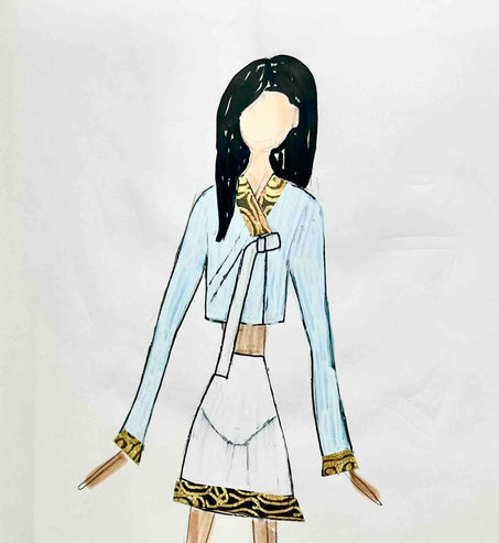 A sheer jacket and skirt set inspired by cultural Korean dresses.